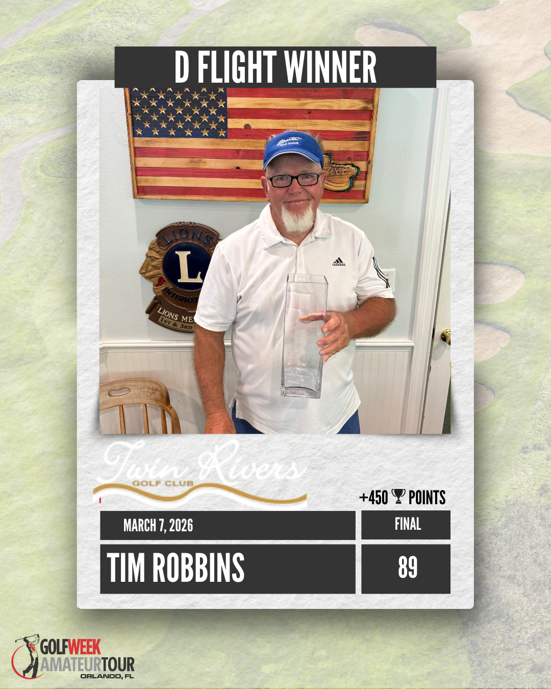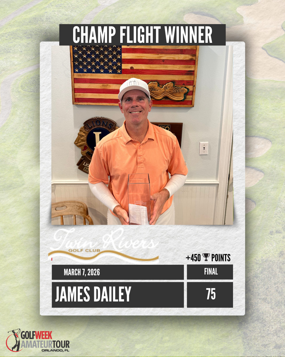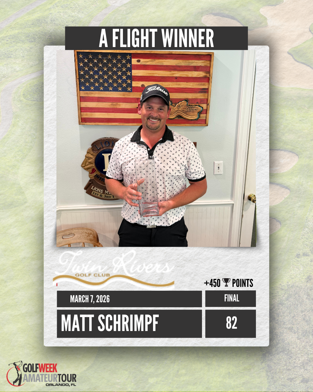 The conditions were good at Twin Rivers, but the course played really tough leading to some higher than normal scores.  James Dailey, playing in his first tournament of the year won the Championship Flight by 3 shots over Drew Peden. 2025 A Flight Player of the Year Matt Schrimpf held of Brian Soukup to get his first victory of the year.  Black Bear Golf Club is next up on April 11.
