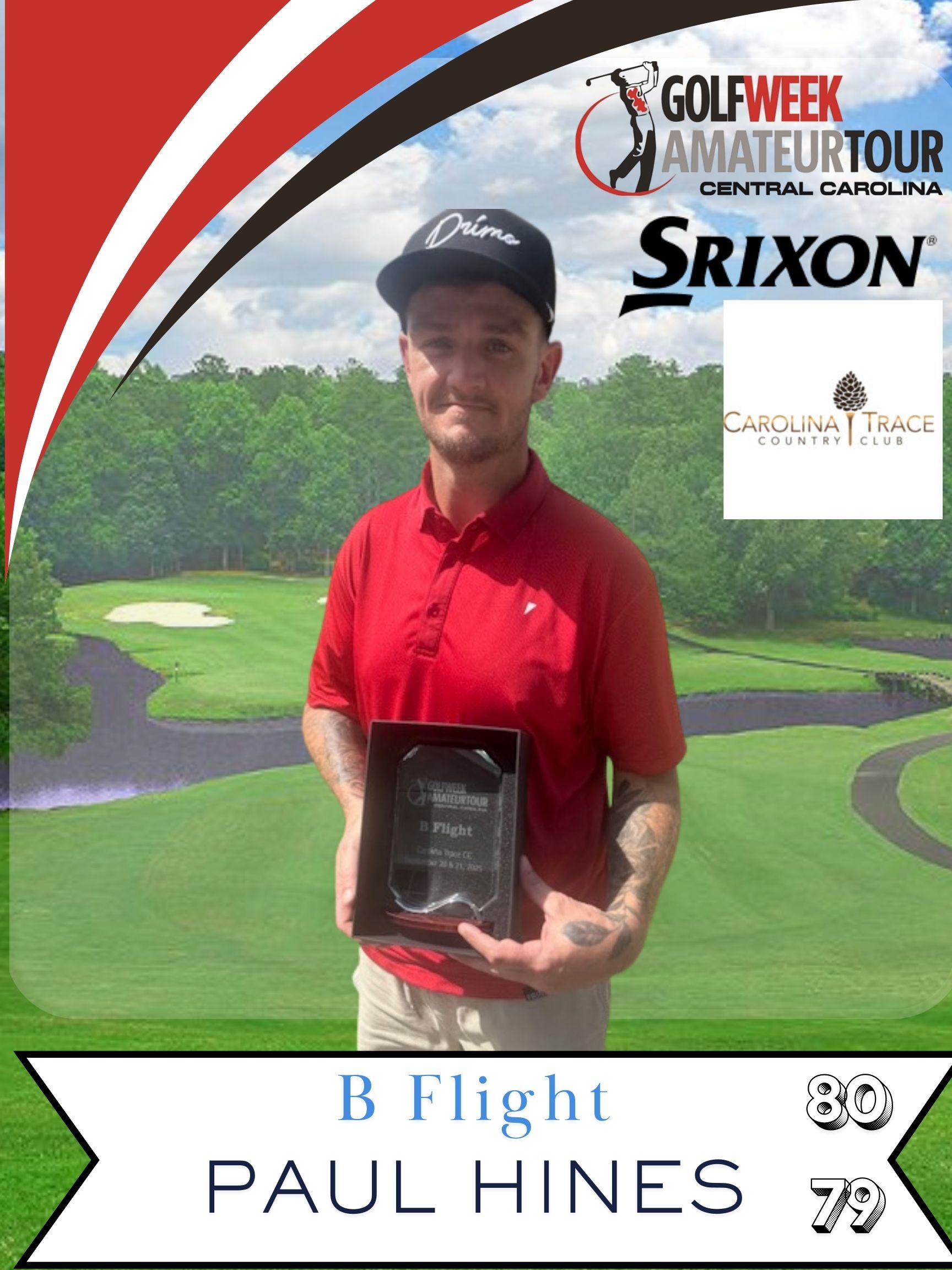 Mike Levister drove to Lillington with one thing on his mind and that was a win in the A flight and his round of 79 made that a reality. Great job Mike! Brad Wicker was runner up as he posted 83, while Quinton Toler from the Eastern NC Tour placed third with a score of 84. TD Chuck Smith and Gavin Locklear ended the day T4 by carding 87’s, while Jeremy Penderman and Mike Martin matched scorecards posting 88 for a T6 day.