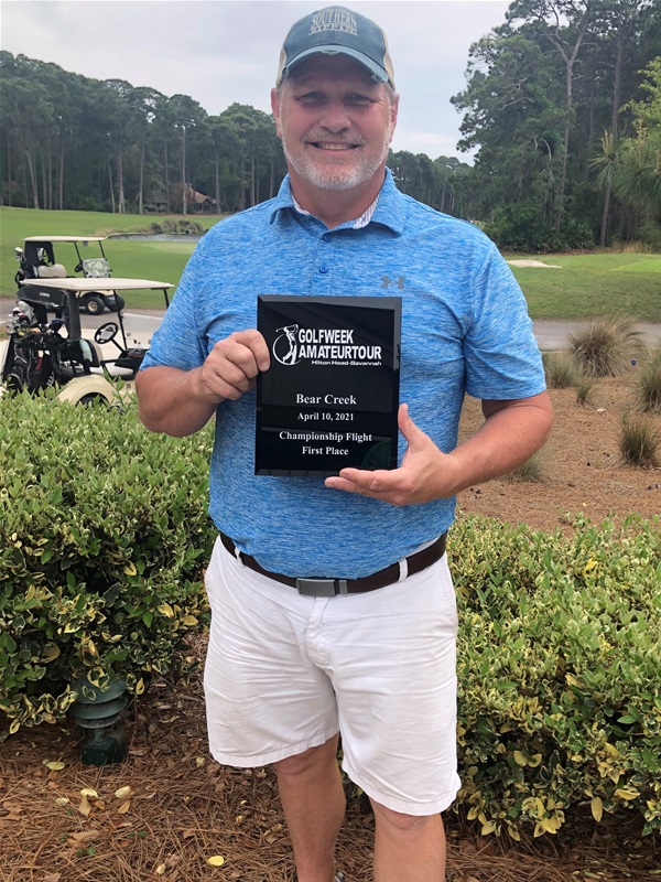 struck a perfect approach shot into the green. Jim then promptly rolled in the 15 foot birdie putt for the victory at