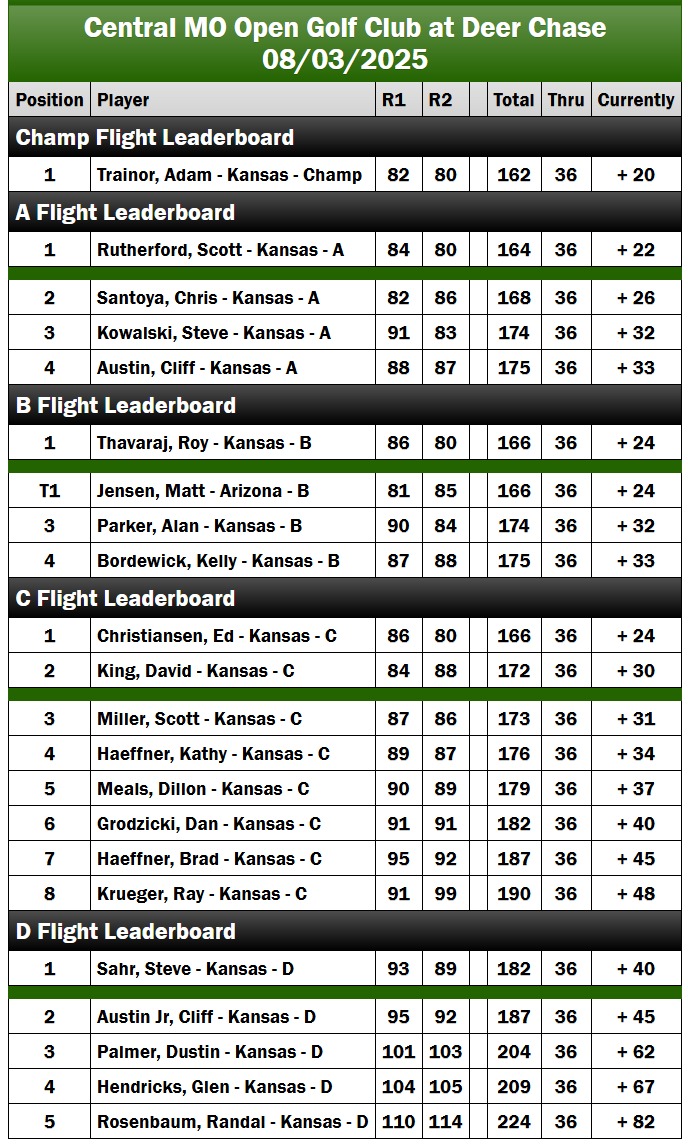 Day 2 Deer Chase 2025 - Day 2 Results