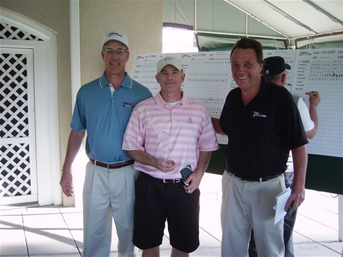 The B Flight tournament was a heated competition decided by one stroke. Rick LoPiccolo of the Metro NY tour took home the trophy in the B flight with a round of 88, which included a chip-in birdie on the 1st hole, his 11th of the day. Derek Stevenson, also from the Metro NY tour was one shot back with an 89 that included an amazing birdie on the #1 handicap Par 5 third, which plays over water to an extremely difficult green. A further shot back was Tony White of the Philly Metro tour with a round of 90.